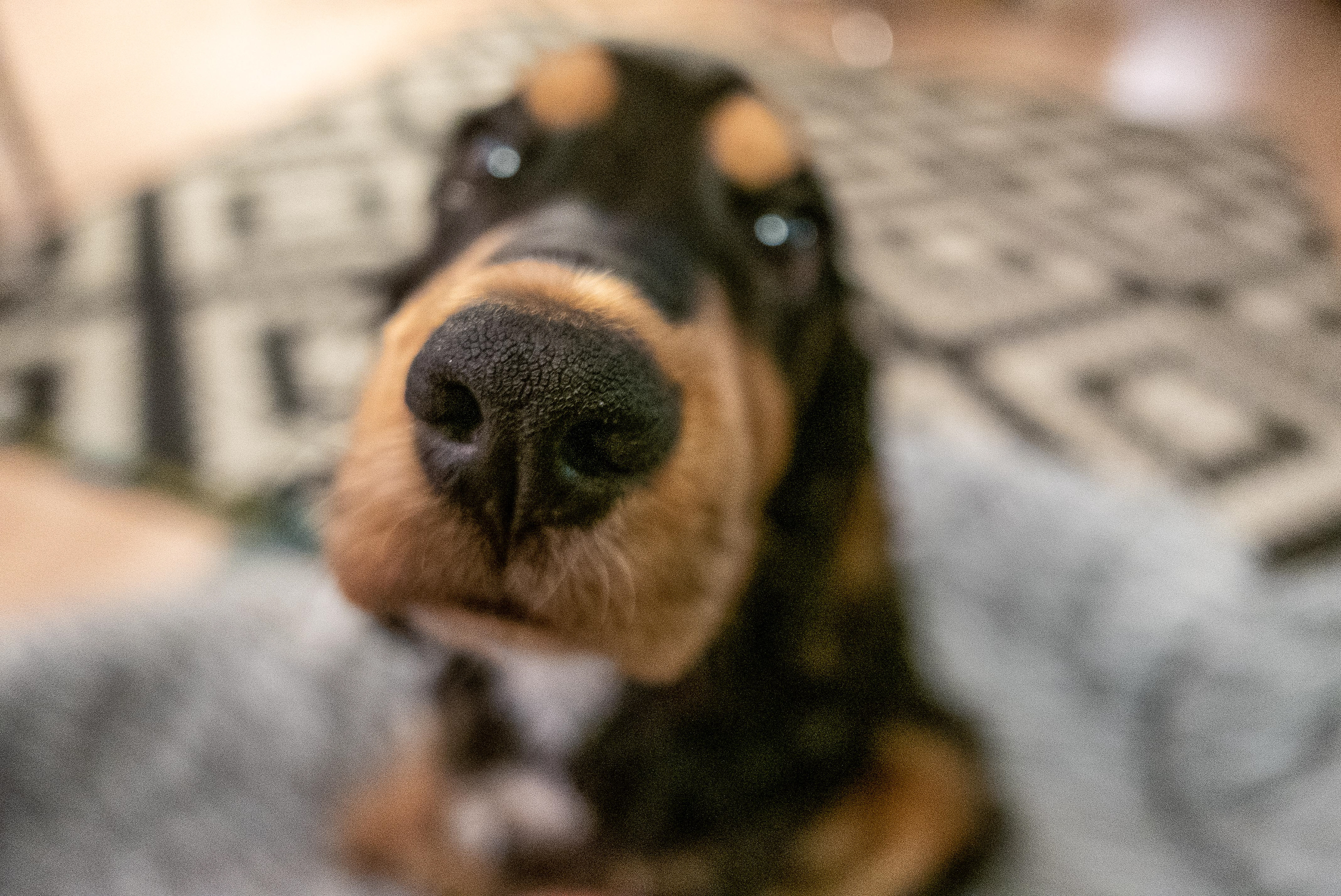 21-11-2021 - Brodie komt even kennismaken met de nieuwste huishoudelijke aanwinst: de robotstofzuiger. De ontmoeting is van korte duur. Brodie werpt een blik op het brommende zwarte apparaat en gaat over tot de orde van de dag.