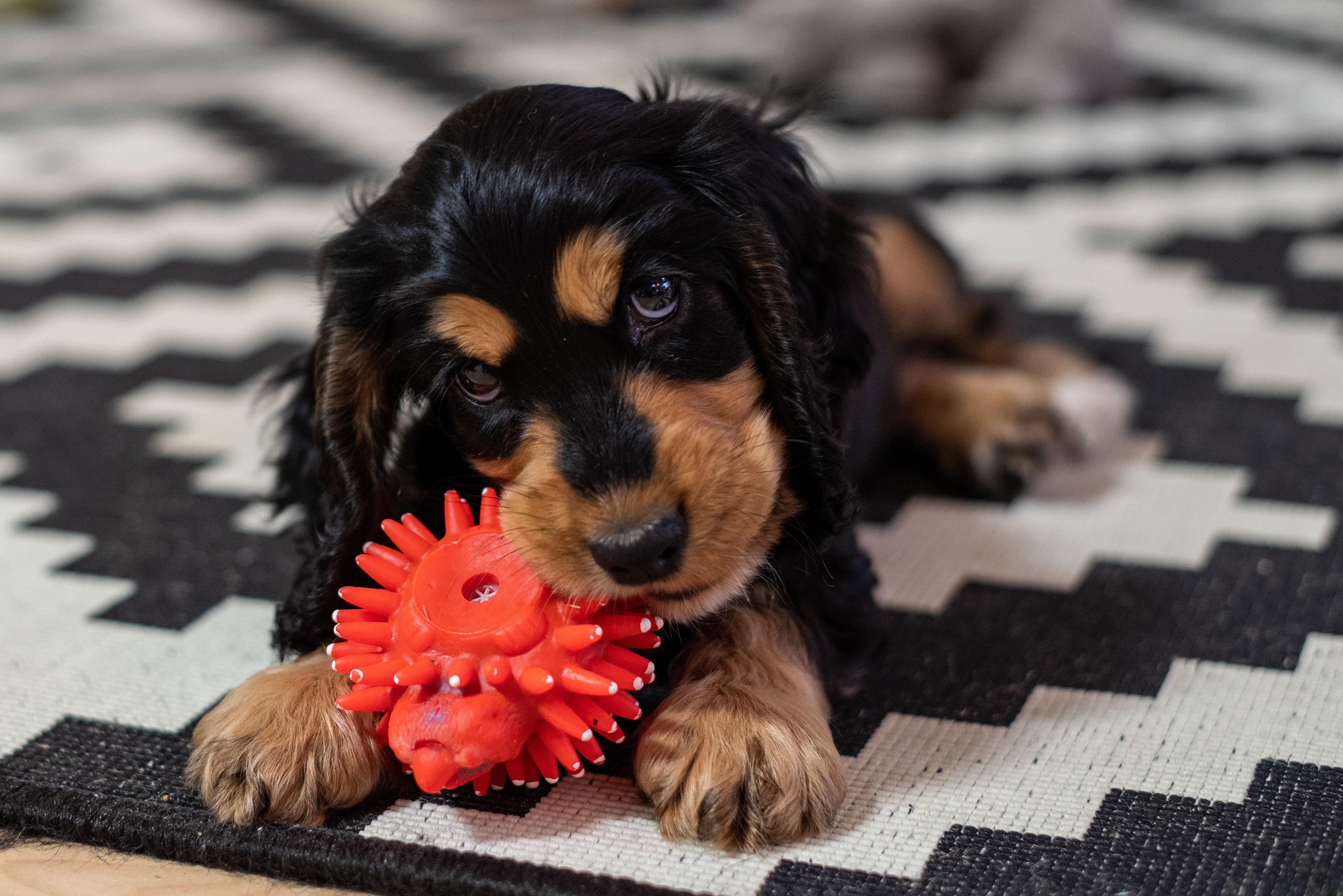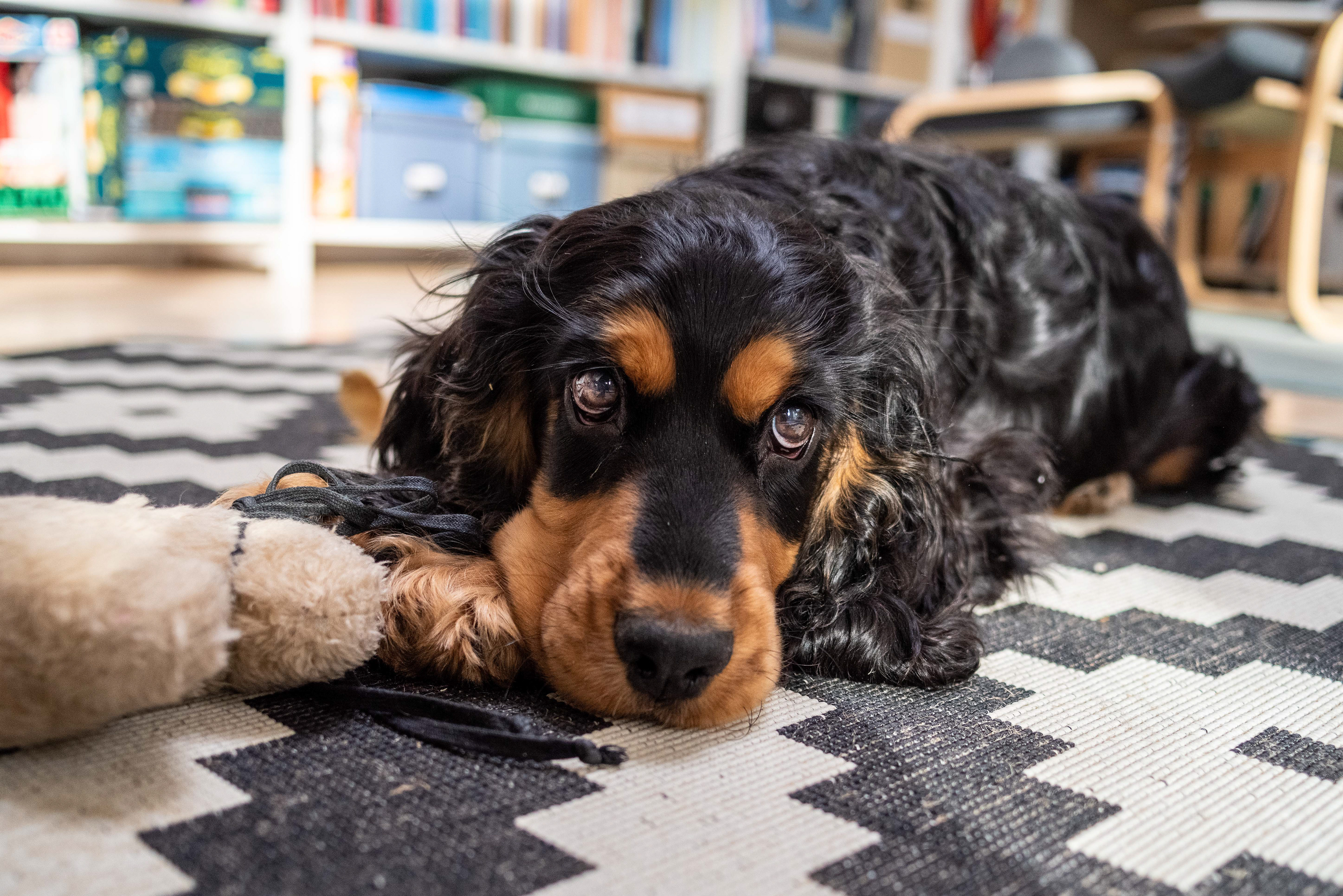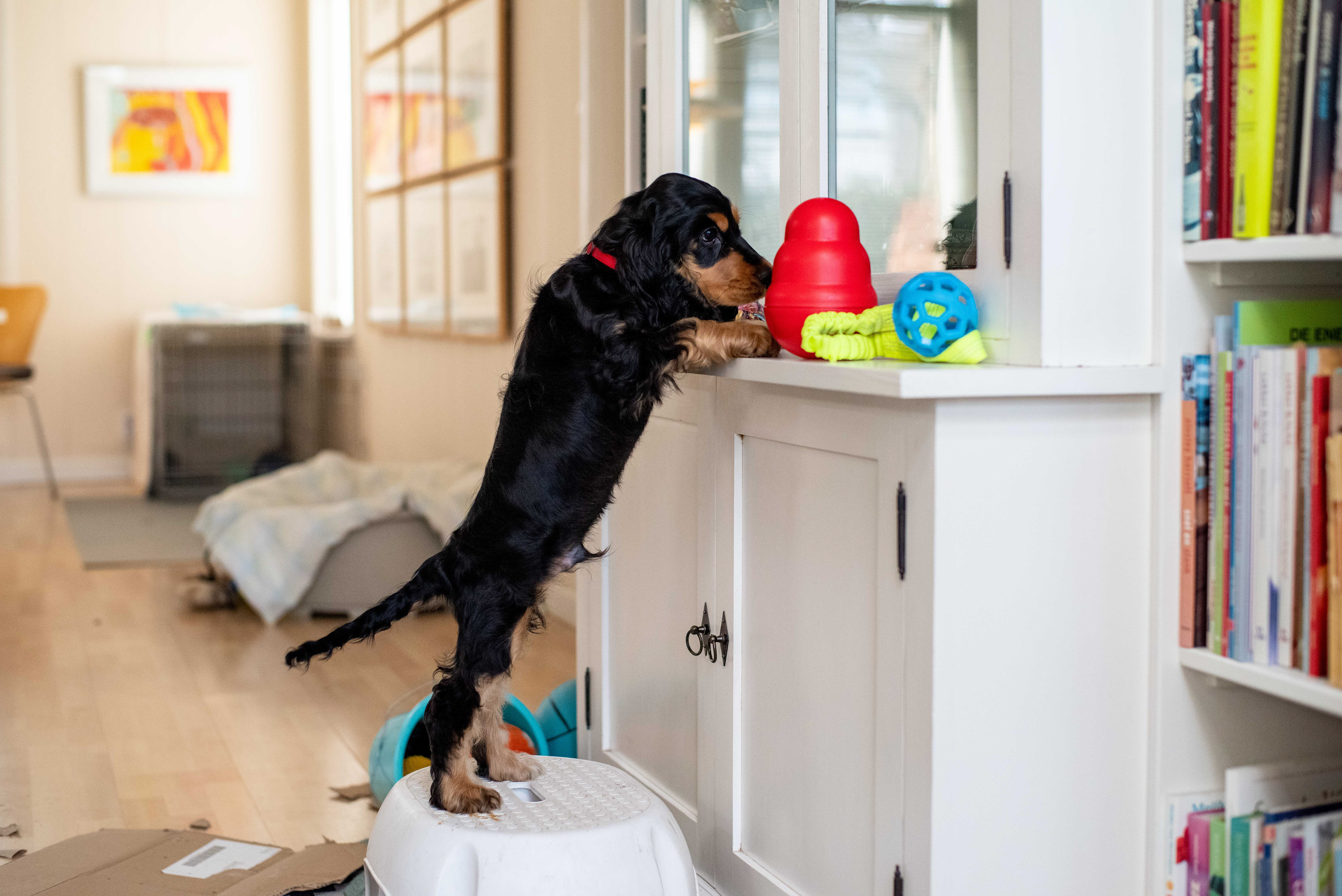 3-12-2020 - De doos met hondenspeeltjes is omgeschud, oude kleden van zolder gehaald. Er is een pup in huis.