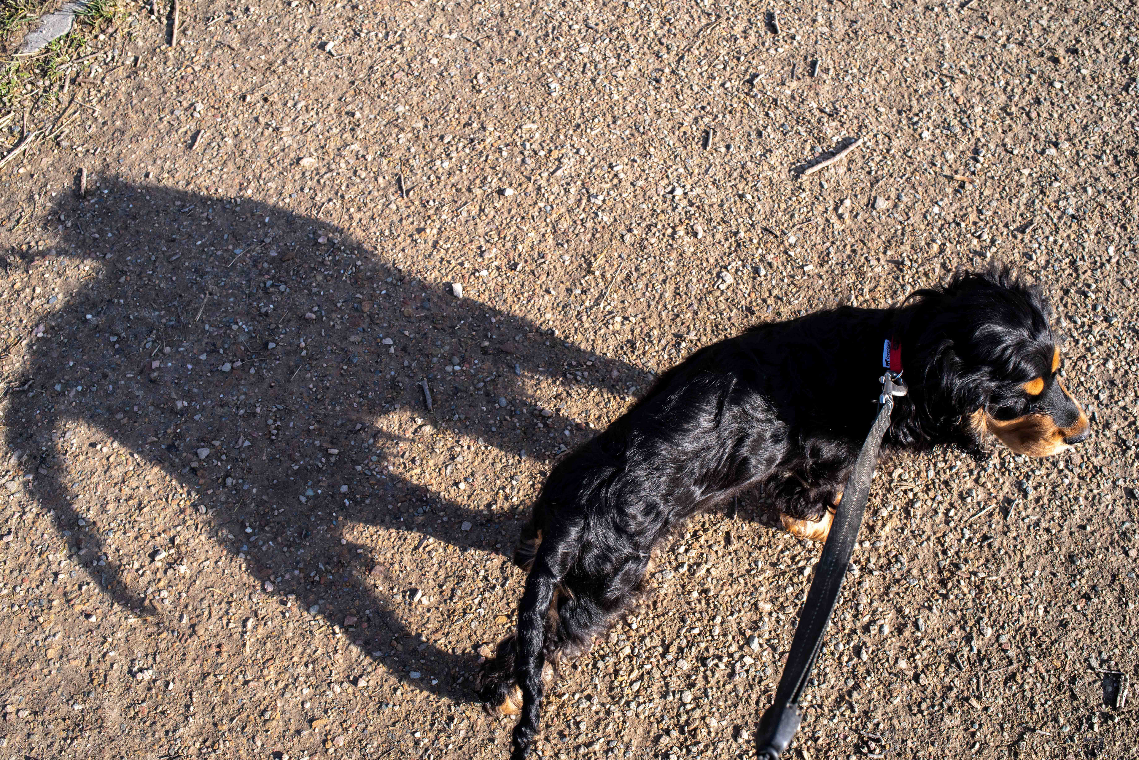 31-1-2021 - Zondag doet zijn naam eer aan. De zon staat nog niet hoog aan de hemel en geeft mooie lange schaduwen. Daarom Brodie vanuit vogelperspectief.