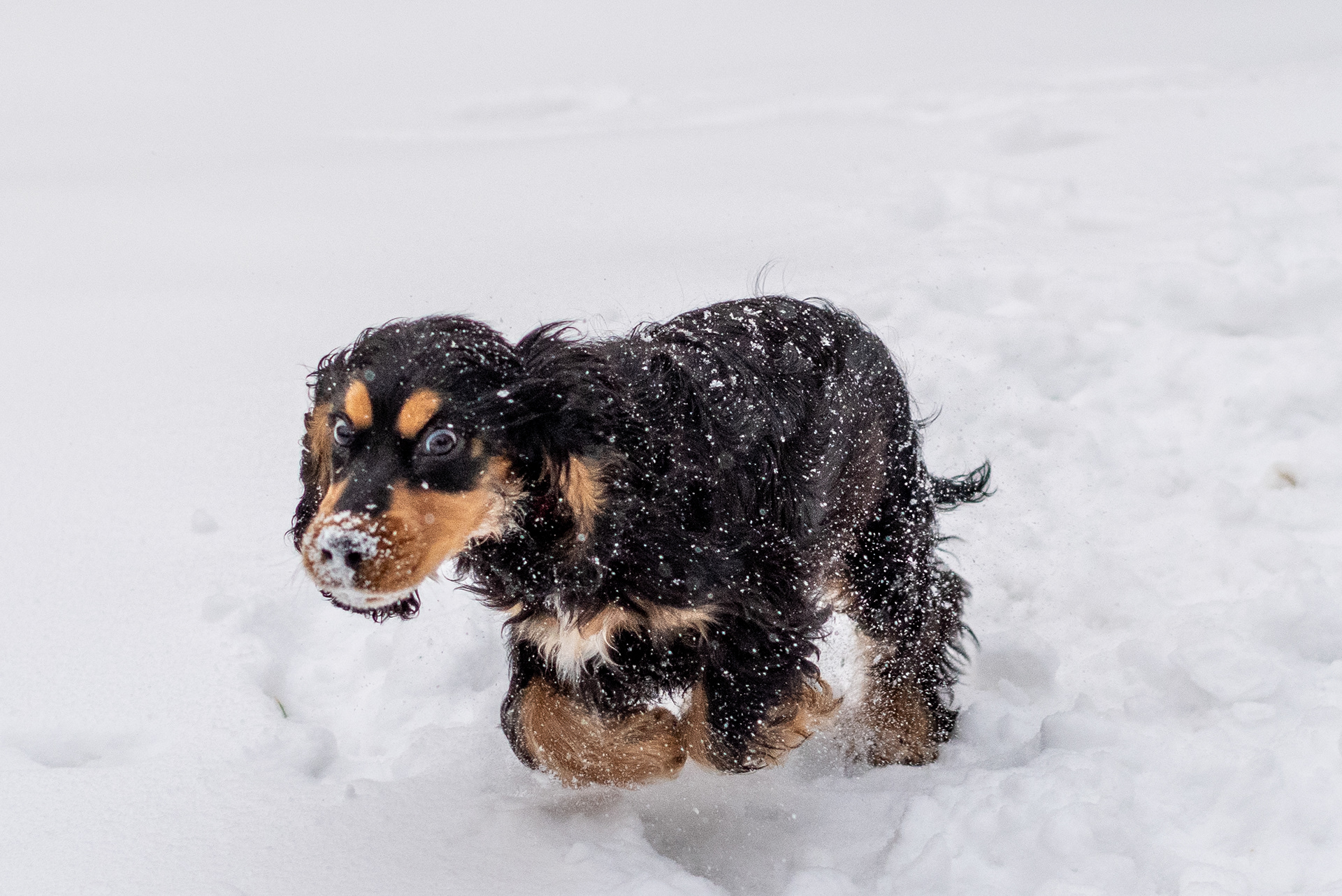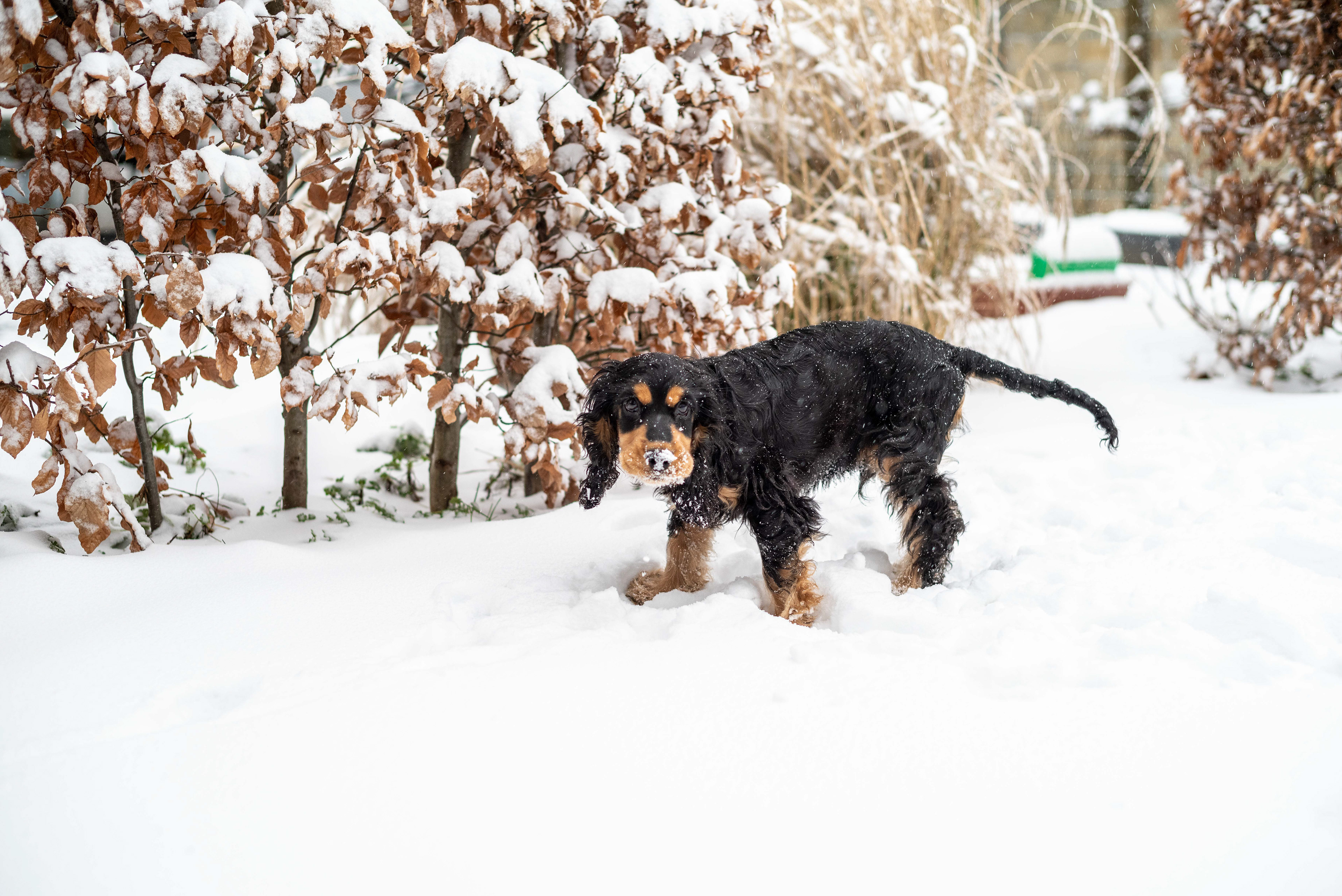 16-1-2021 - Voor het eerst sneeuw in het leven van Brodie. Hij wordt er niet warm of koud van (wel nat). De fotograaf realiseert zich dat er in het leven van een pup vrijwel dagelijks iets nieuws gebeurd. Nieuw is normaal. De verwondering van Brodie geldt meer de fotograaf, die hem achterna sluipt met een zwart ding voor zijn gezicht.